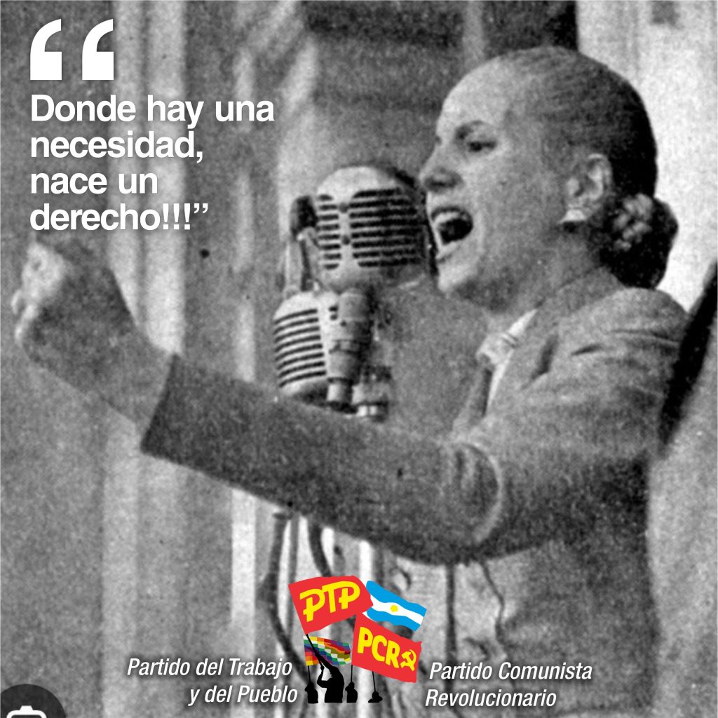 Hoy a 73 años del fallecimiento de María Eva Duarte de Perón, Milei defiende y profundiza esas políticas, beneficiando a esas minorías de adentro y de afuera.